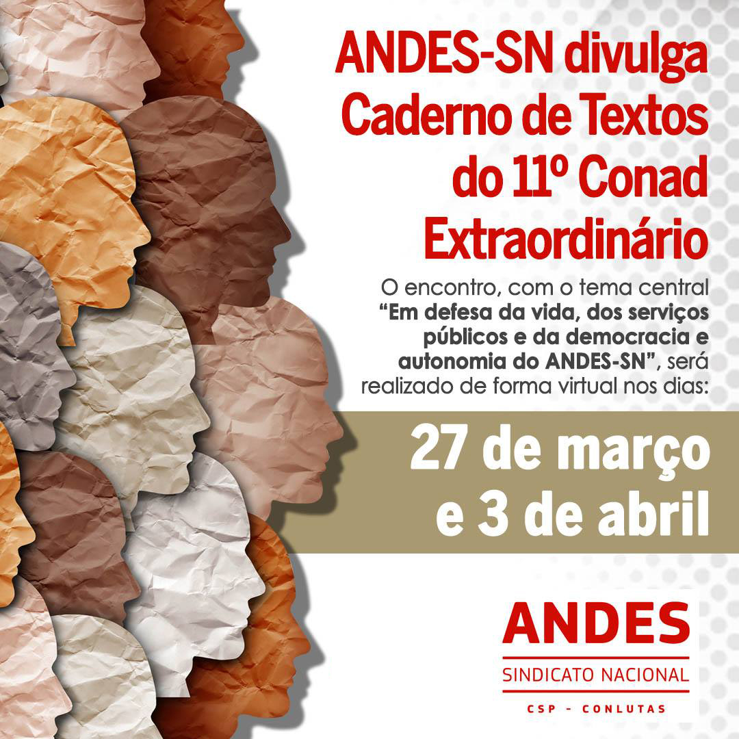 O Conselho do ANDES-Sindicato Nacional (CONAD) se reunirá virtualmente nos dias 27 de março e 3 de abril para deliberar sobre a realização do Congresso ANDES-SN e a atualização do plano de lutas das Instituições Federais de Ensino Superior (Ifes) e Instituições Estaduais e Municipais de Ensino (Iees/Imes), além da autonomia do ANDES-SN.