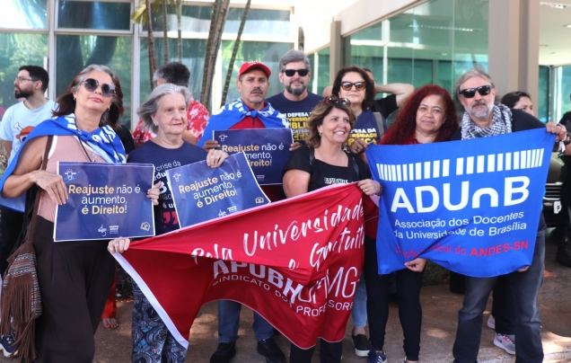 A Associação dos Docentes da Universidade de Brasília - Seção Sindical (ADUnB-S.Sind) participou nesta quarta-feira (8/11) da jornada de lutas proposta pelo Fórum das Entidades Nacionais dos Servidores Públicos Federais (Fonasefe). Durante a manhã, ocorreu um ato em frente ao Ministério da Gestão e da Inovação em Serviços Públicos (MGI) reunindo dezenas de entidades sindicais pela inclusão das servidoras e dos servidores federais na Lei Orçamentária Anual (LOA) 2024 e contra a reforma administrativa. À tarde, o ato ocorreu no Anexo II da Câmara dos Deputados.