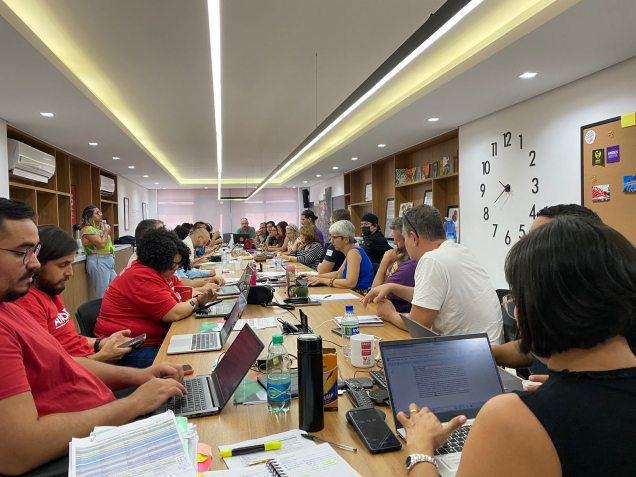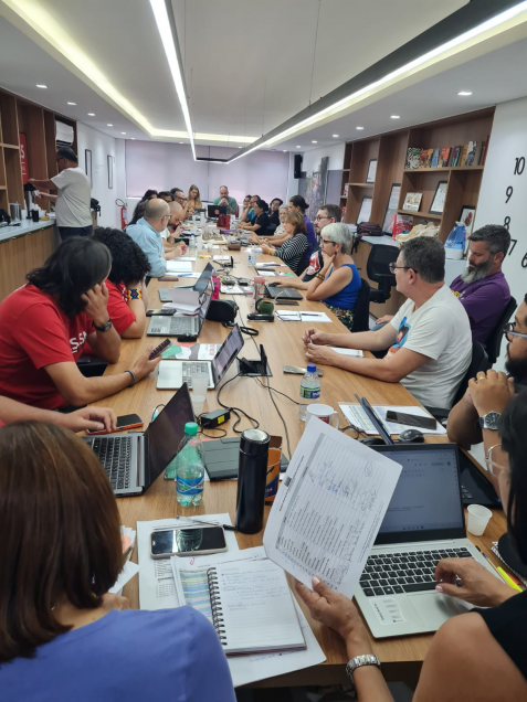 Durante o encontro, representantes das Seções Sindicais e da diretoria do Sindicato Nacional avaliaram a Campanha Salarial 2024, as deliberações das assembleias realizadas pelas ADs e também prepararam a última reunião da Mesa de Negociação, realizada com o Governo Federal.