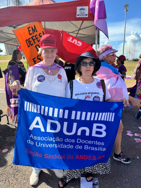 “Estamos aqui no 8 de março, um dia de luta das mulheres, é um momento de confraternização entre os movimentos, de saber o que já fizemos e o que temos ainda por fazer, mas também é um momento de ver que temos avanços e que temos um mundo possível a ser construído com nosso protagonismo, com a nossa luta e com os desafios que sabemos enfrentar no nosso cotidiano”, destacou a presidenta da ADUnB-S.Sind, Maria Lídia Bueno Fernandes.