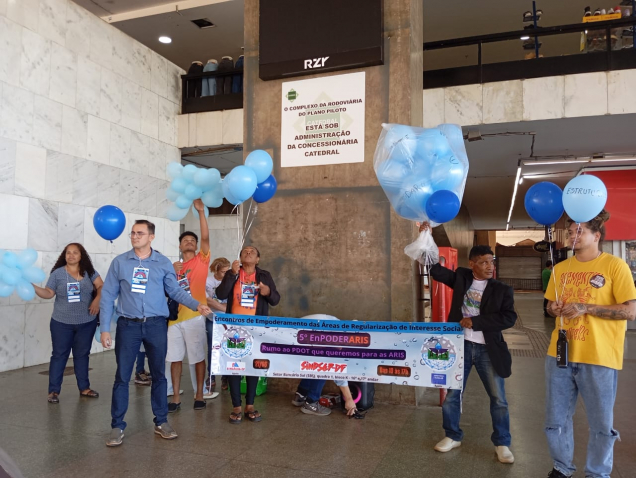O encontro encerrou com um ato público na Rodoviária do Plano Piloto, em que Movimento Vida & Água (MVA) buscou dialogar com a população sobre a importância da pauta das ARIS e da participação propositiva do novo PDOT na CLDF.