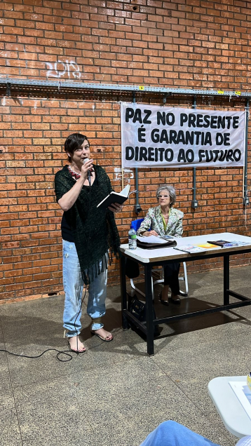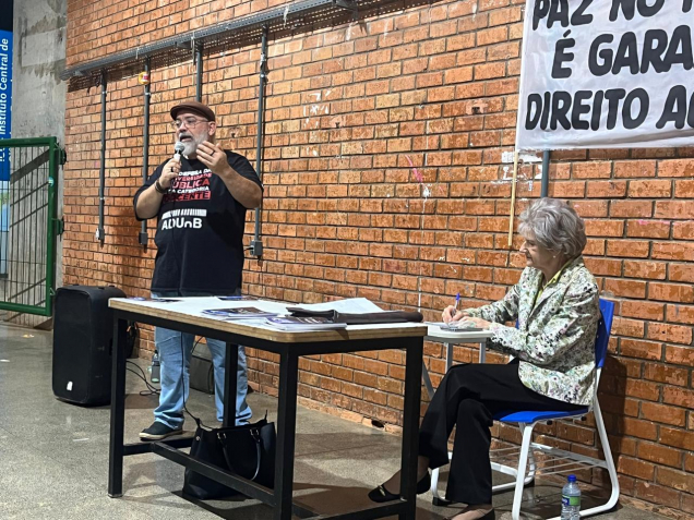 A ADUnB foi representada pelo professor Pedro Gontijo, membro da diretoria executiva da entidade. Para ele, discutir a paz em tempos de crescente intolerância, violência e discriminação é uma necessidade urgente. “Vivemos um momento em que, no mundo inteiro e também no Brasil, presenciamos diferentes manifestações que caminham na direção contrária à paz, incentivando a violência e a negação de direitos”, destacou Gontijo.
