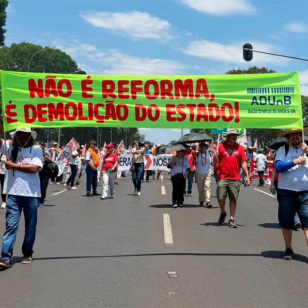 A ADUnB-S.Sind reafirma seu posicionamento contrário à Reforma Administrativa e conclama a comunidade universitária a se mobilizar. A proposta representa um grave retrocesso social e ameaça a continuidade das políticas públicas que garantem direitos fundamentais à população. A ADUnB-S.Sind defende um Estado forte, democrático, comprometido com o interesse público e a soberania nacional.
