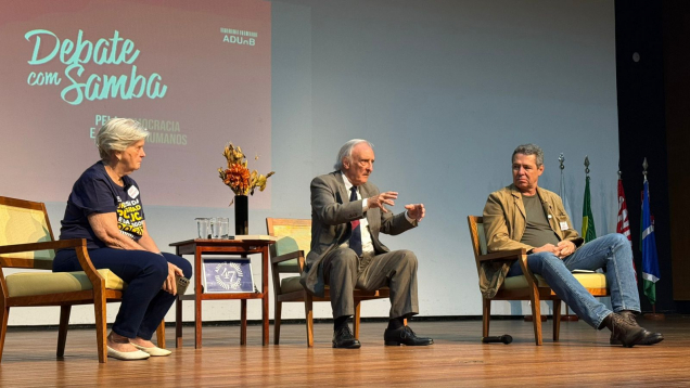 Os direitos humanos e sua relação com a democracia foram tema do evento “Debate com Samba”, promovido pela ADUnB nesta quarta-feira (10), no Centro Cultural do Sindicato. A atividade celebrou a proclamação da Declaração Universal dos Direitos Humanos pela Assembleia Geral da ONU, em 1948. Participaram do debate “Democracia em tempos difíceis: reinventar direitos e reinserir o humano na disputa pelo futuro” os professores Alexandre Bernardino (FD/UnB) e José Geraldo de Sousa Júnior (professor emérito da UnB), com mediação de Maria Luiza Pereira, diretora da ADUnB. Em seguida, o grupo “Samba da Guariba” apresentou-se ao público.